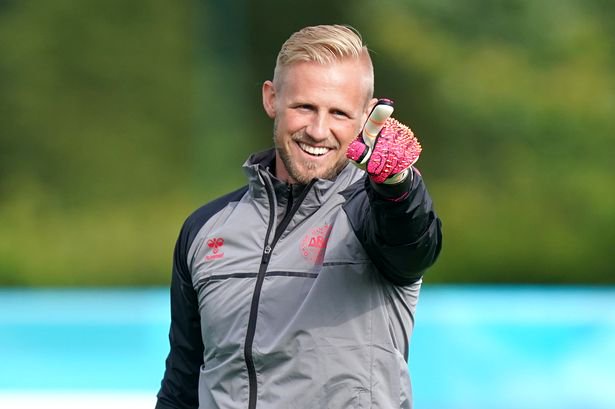 The laser was pointed at schmeichel as england captain harry kane stepped up to take a penalty in extra time.